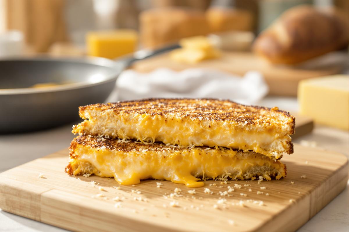 Dans un sandwich traditionnel, le pain est grillé à l’intérieur, tandis que l’extérieur reste moelleux. Ici, on renverse tout : le fromage fond à l’extérieur, le pain devient ultra croustillant, et l’intérieur garde toute sa tendresse.